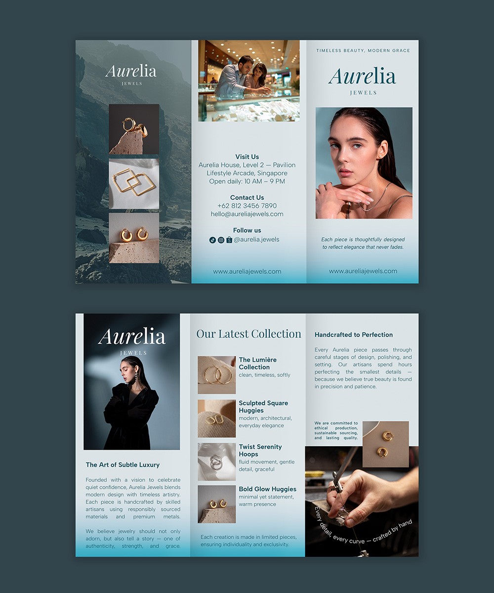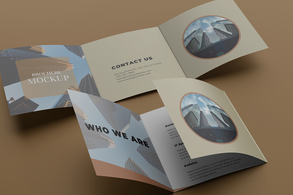 Vi designer hver trifold-brosjyre individuelt, og tilpasser innholdsoppsettet, grafikken og stilen til bedriftens karakter og kommunikasjonsmål. Vi sørger for at hvert panel har sin egen funksjon og støtter markedsføringsbudskapet.